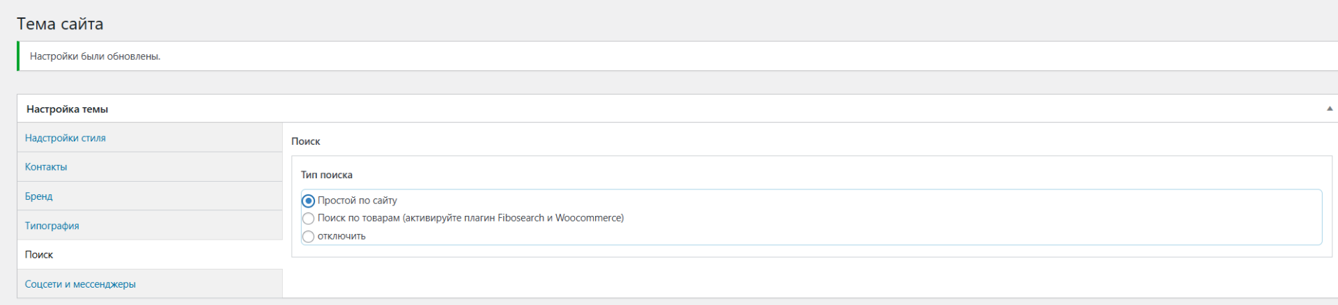 Здесь можно задать настройки для поисковой строки на сайте.